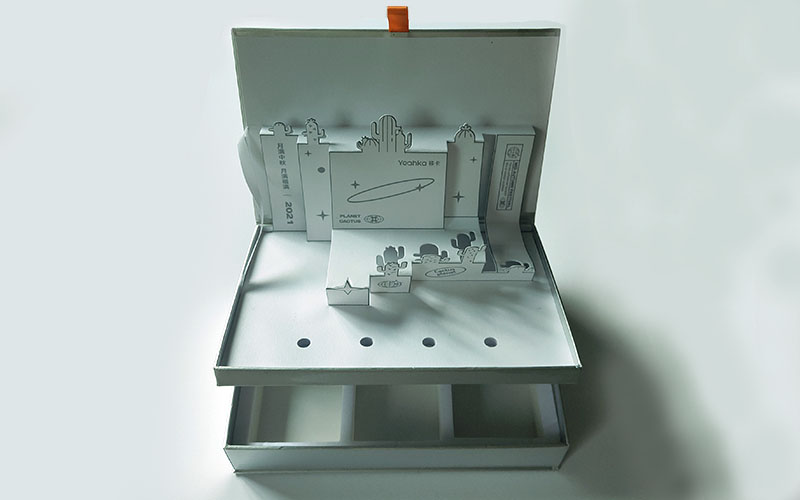 今年博霖就接到一款造型奇特的月餅盒,最初拿到客戶設計稿時還是一頭霧水。月餅盒定制最主要的兩個内容就是結構跟内容兩部分,由於客戶對於結構完全不瞭解,全憑自己想象做的。做爲專業的包裝盒定制廠家業務員,在看到客戶設計後也是很迷糊,再跟客戶耐心的溝通瞭解其需求後主動爲其提供結構的設計。盒型主要分爲兩層,一層爲勳章展示層、一層爲月餅禮品放置層。其中勳章層還有立體賀卡,並且客戶要求兩層都會翻蓋的形式。爲此特意設計瞭上下兩層均爲翻蓋的雙層盒,将第一層盒子固定到皮殼上,使第一層做爲第二層的蓋第一層又有單獨的蓋。這樣就完美解決瞭所有問題,既是雙層盒又是雙層翻蓋盒。